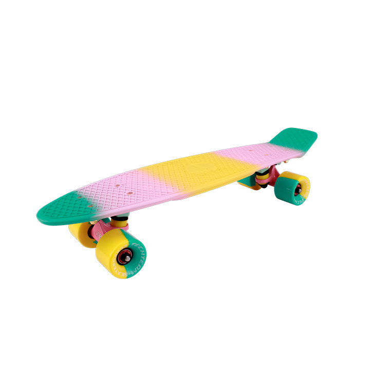 Яркий круизер-пенниборд в классическом размере 22" — Multicolor 22". Хит сезона! Быстрый, маневренный, не требует особых навыков катания. Лучший друг для перемещения по городу. Преимущества модели не только в её ярком дизайне, который сразу запоминается и выделяет пенниборд среди аналогов. Качество материалов и технические характеристики составляющих: колес, подшипников, подвески — на высоте.