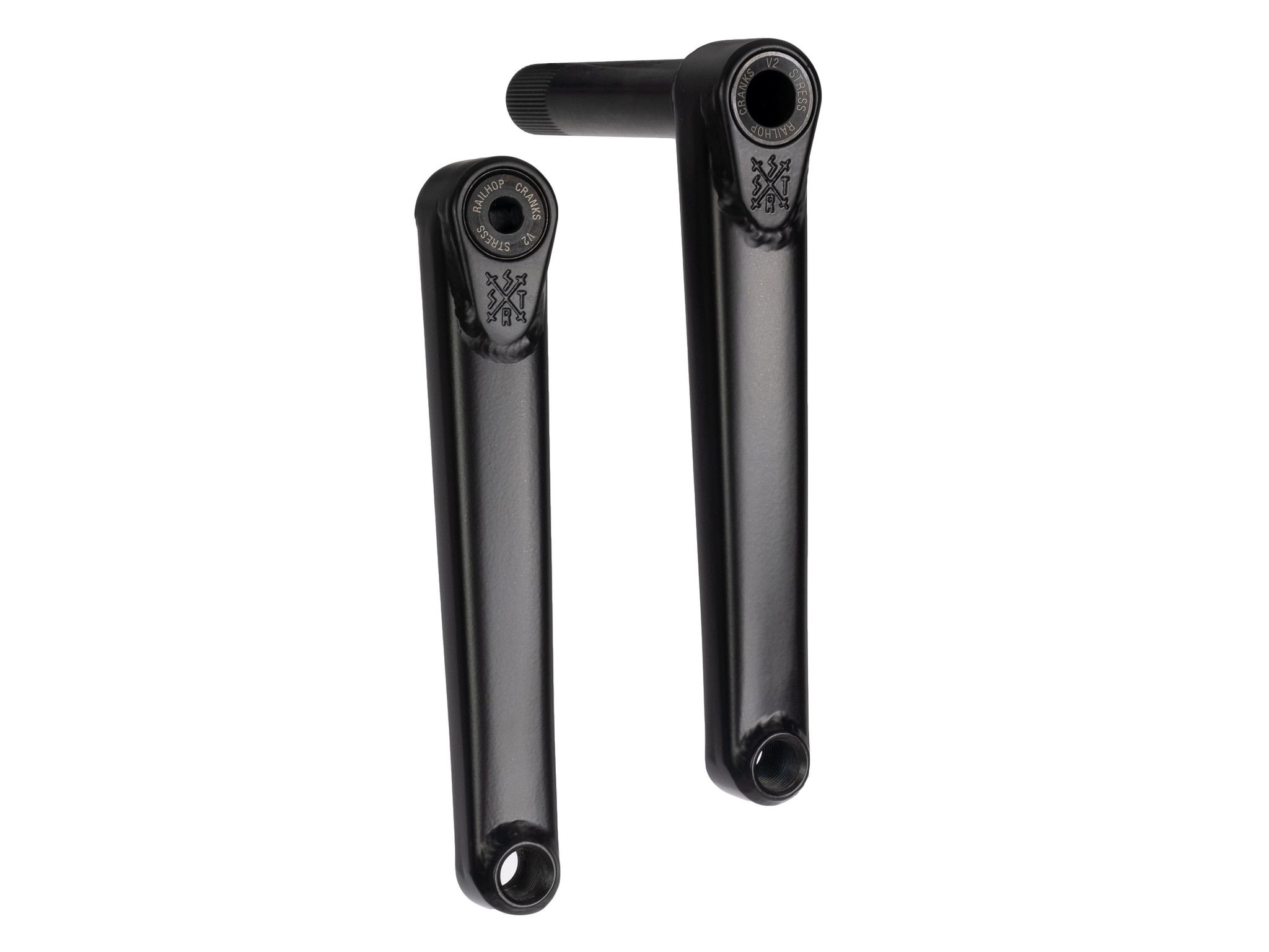 Railhop cranks - сверх надежные 2,5 элементые шатуны от российского бренда STRESS. Литая косынка увеличивает прочность шатуна в месте крепления к оси и сглаживает поверхность, где он касается щиколотки. Укороченный профиль спасает ваши ноги от повреждений во время тейлвипов. Одни из самых (если не самые) надежных шатунов на рынке. Пожизненная гарантия тому подтвереждение.