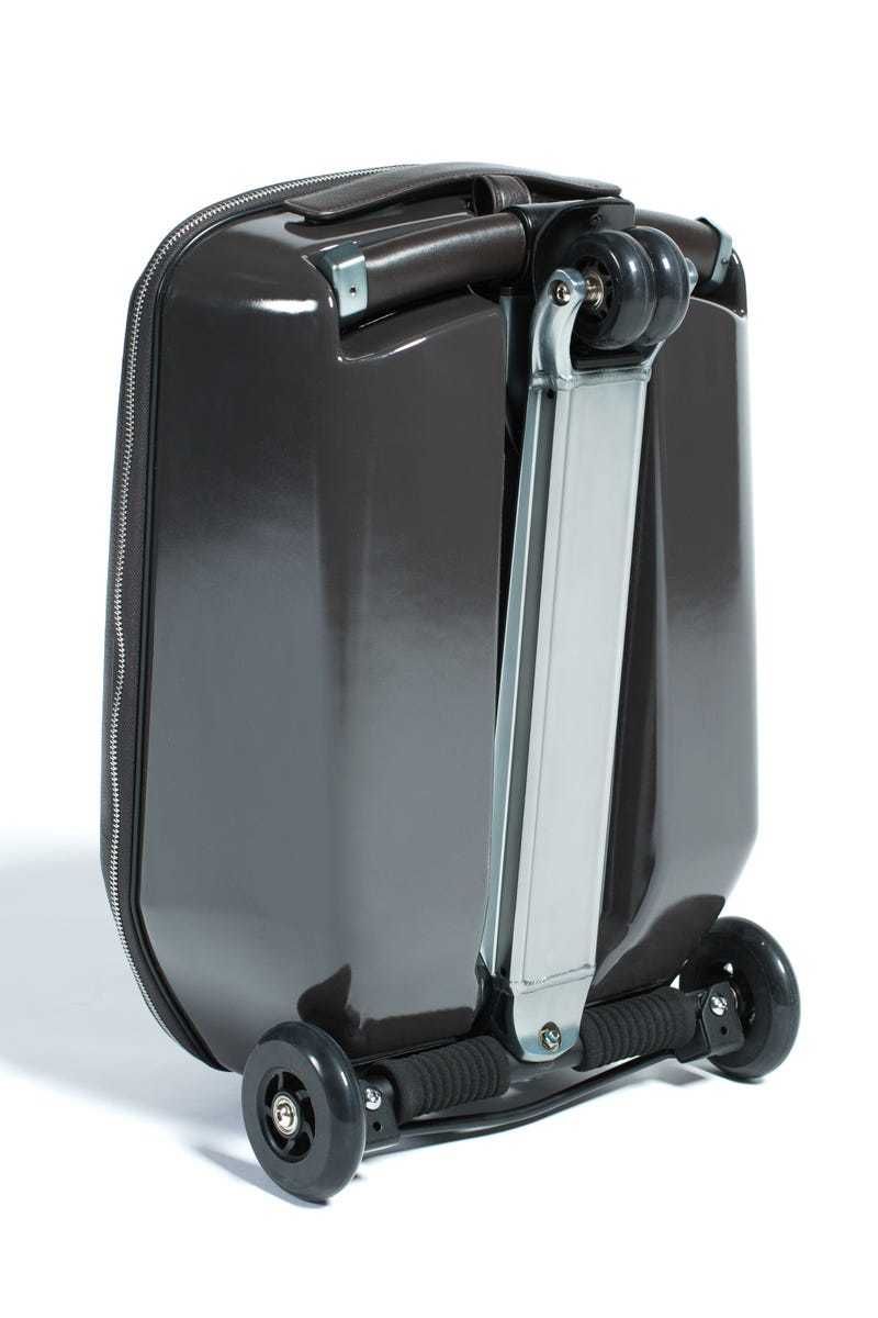 Телескопическая ручка самоката складывается и Вы можете отправиться в поездку с привычным чемоданом!