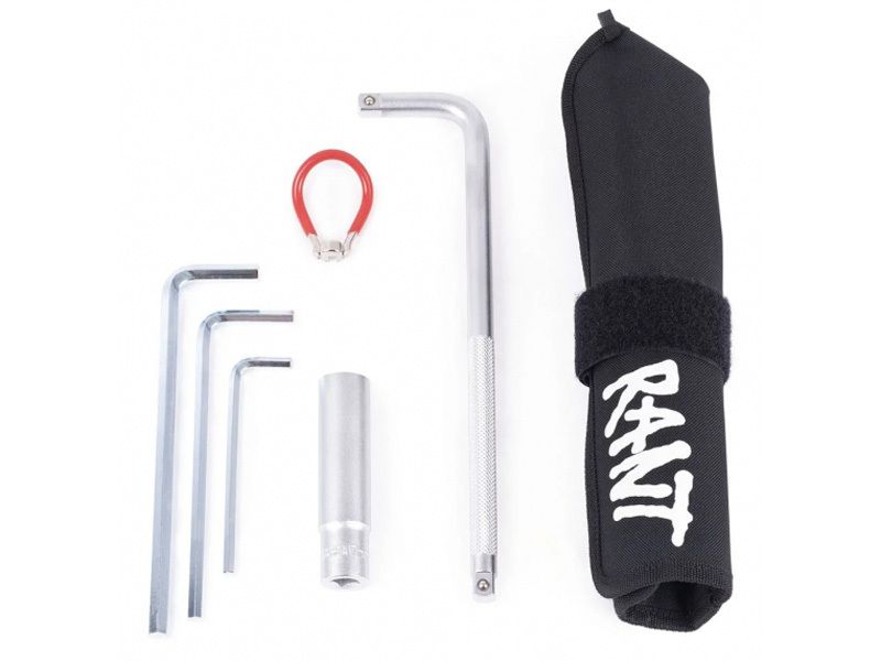 Набор инструментов в который входит 3 шестигранника (5мм, 6мм, 8мм), спицевой ключ и ключ для пег на 17мм. Всё это дело завернуто в удобный для транспортировки чехол. Определенно MUST HAVE, если у вас нет этих необходимых инструментов.