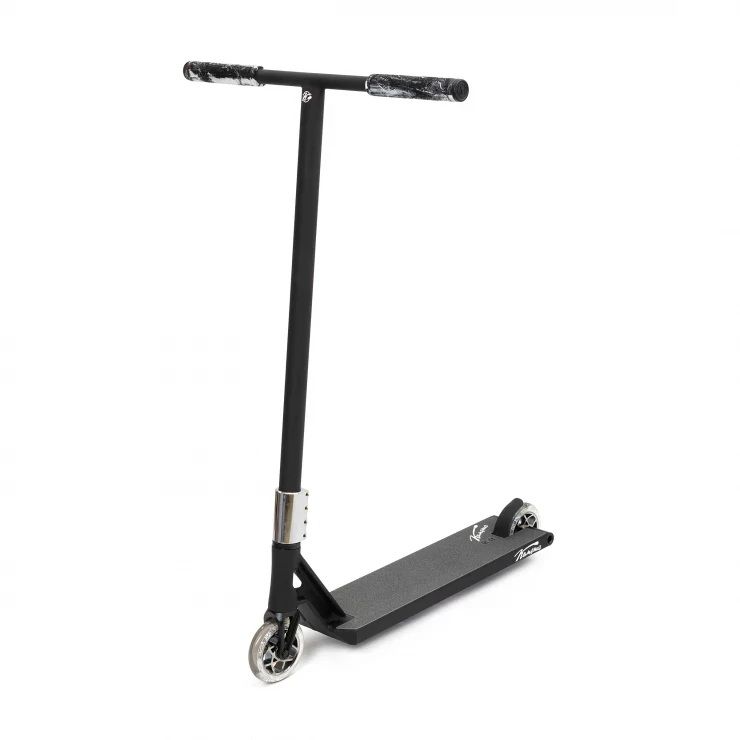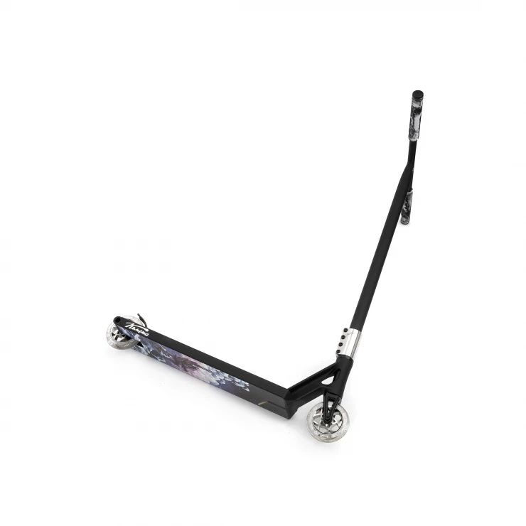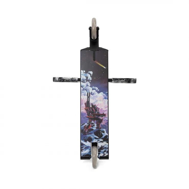 Широкая плоская дека, SCS, стальной руль, красивые цвета и космически крутой арт на нижней части.