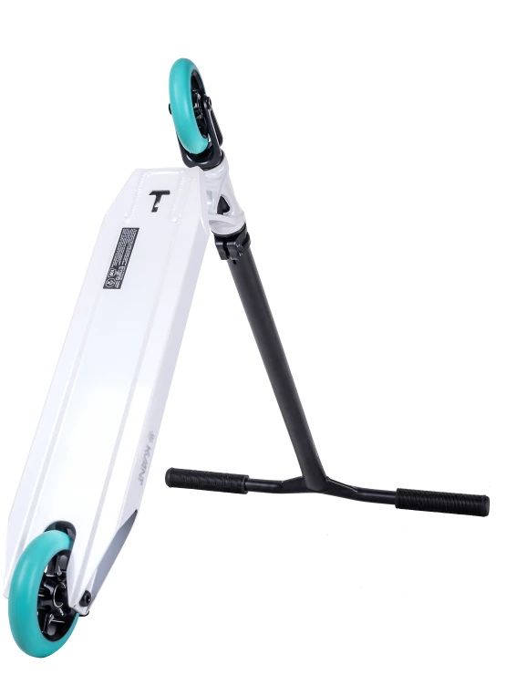Самокат имеет очень легкую деку, которая иготовлена из алюминия 7003 с термообработкой. В этот раз был усилен профиль деки, улучшена технология сварки, добавлены пластиковые вставки в декенды и изменена геометрию нижнего выреза под колесо.