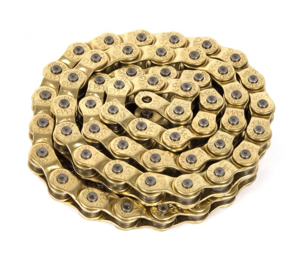 Каждое звено цепи украшено логотипом бренда Cult, а тефлоновое покрытие увеличивает износостойкость, замедляя износ как цепи, так и звезд. Вес цепи составляет всего 320 грамм, что делает её легкой и надежной. В комплекте идет замок, обеспечивающий простоту и надежность крепления.