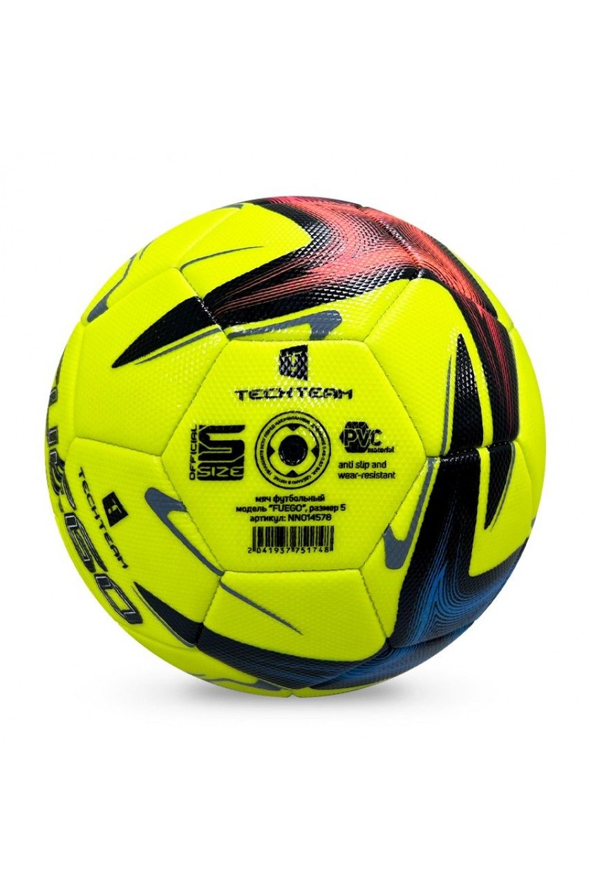 Футбольный мяч TECH TEAM FUEGO размера 5 — практичный выбор для регулярных тренировок и любительских матчей. Модель изготовлена из прочного PVC, который обеспечивает долговечность и устойчивость к износу. Машинная сшивка панелей гарантирует целостность конструкции и сохранение формы даже при интенсивной эксплуатации. Вес мяча — 420 г: это соответствует стандартным требованиям и обеспечивает комфортный контроль и предсказуемую траекторию полёта. Яркий, заметный дизайн помогает легко отслеживать мяч на поле. Подходит для игр на натуральных и искусственных покрытиях.
