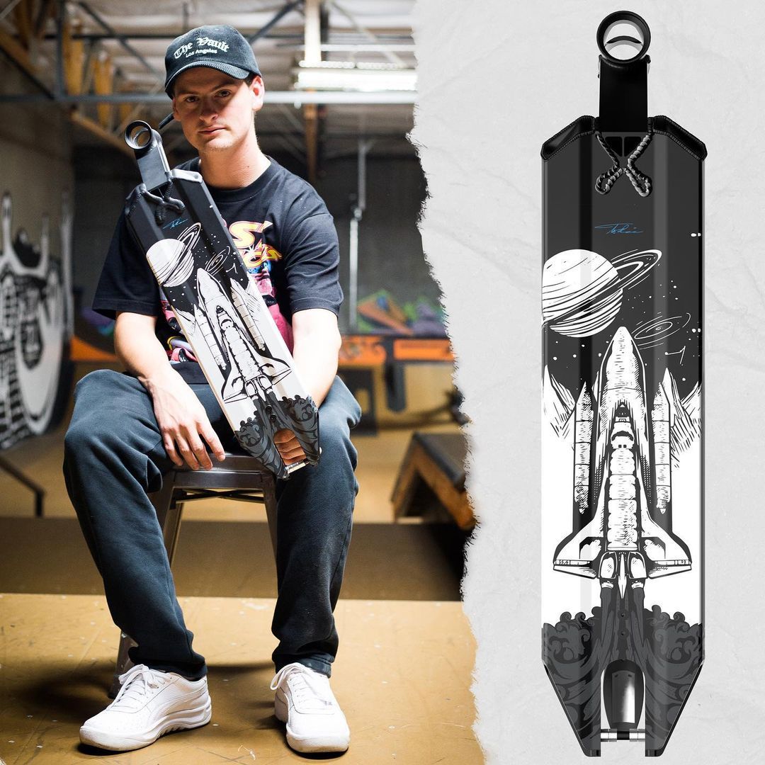 Ширина деки 5" (127мм), длина 20.5" (520мм). Довольно удобная доска. То, что нужно для паркового катания на высоком уровне.