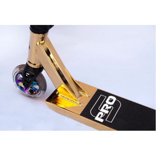 Haevner S-PRO в исполнении Золотой-хром - это идеальное сочетание роскоши и высокой прочности для тех, кто ценит стиль и надежность в мире экстремального спорта. Этот самокат создан для райдеров, стремящихся выделиться и получить максимум удовольствия от каждого катания.
