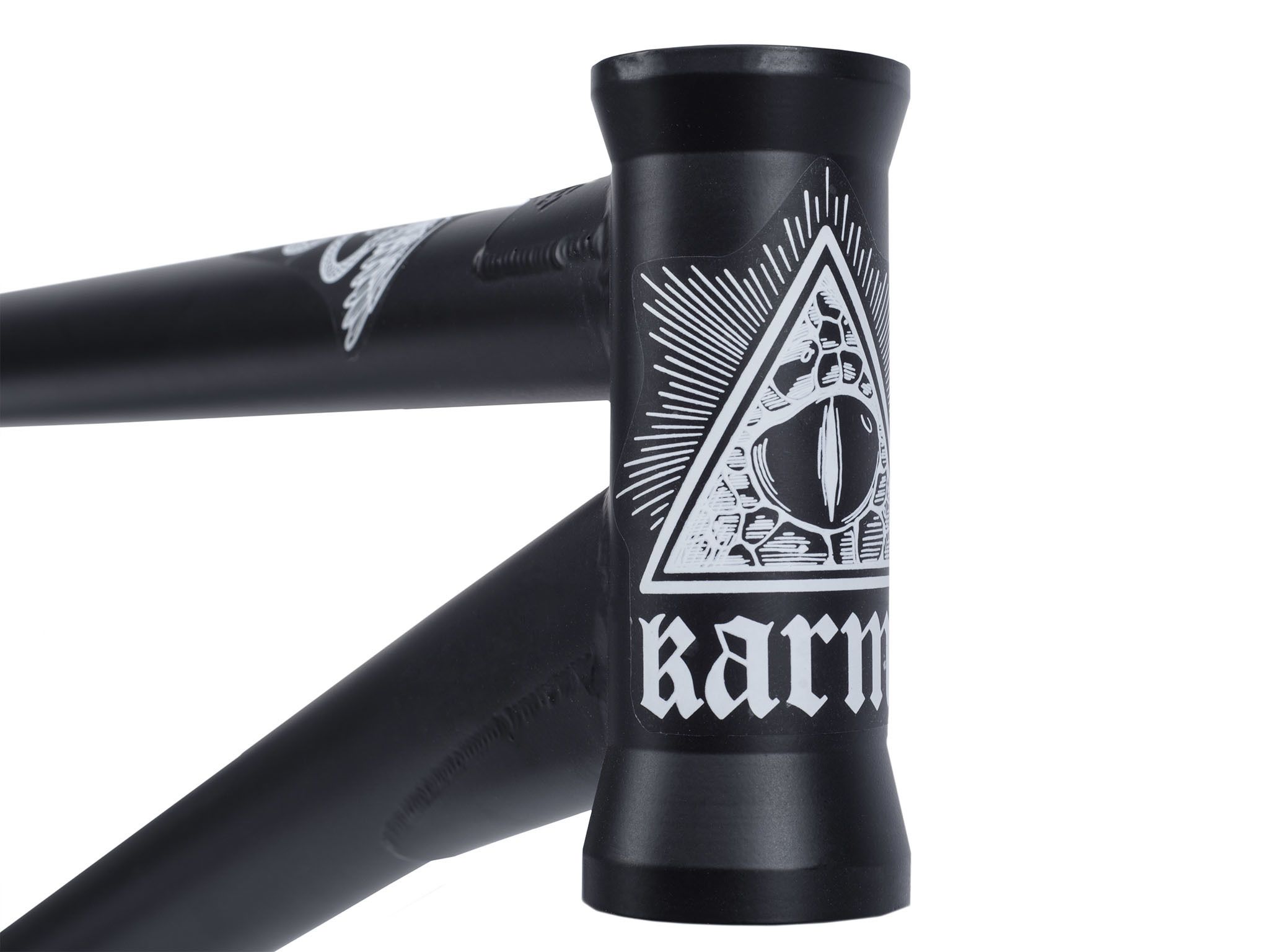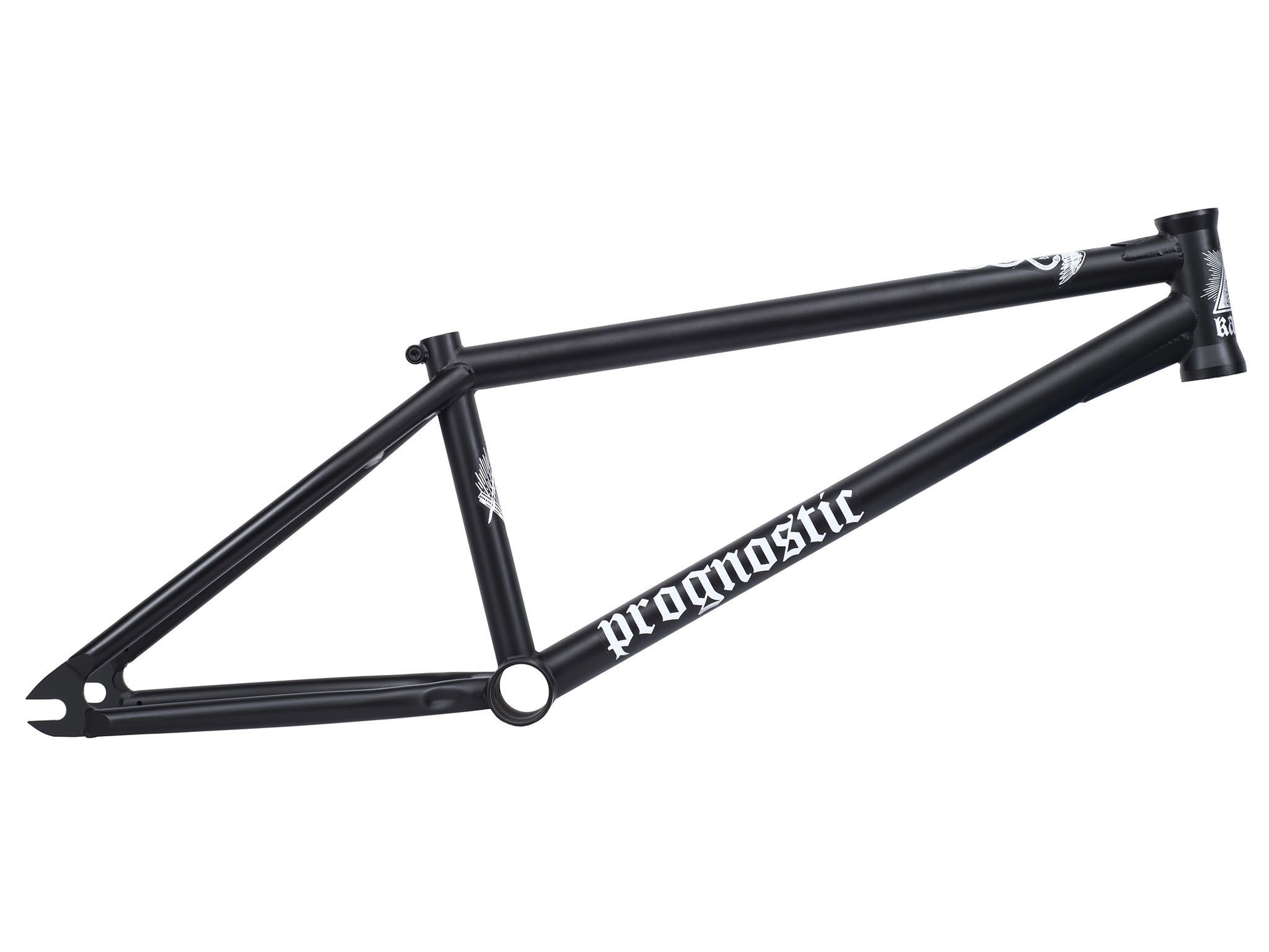 Рама BMX KARMA Prognostic 20.25" пережила серьезные изменения: стала прочнее, немного легче и круче внешне. Новые косынки на верхней и нижней трубе, тисненный логотип в виде змеи, кастомная угловая косынка на нижней трубе - все это увеличило прочность рамы. Добавлены облегченные дропауты. Вес рамы 2600 г, материал - хромолибден 4130, цвет - черный. Стэндовер 9,1", перья 12,75", углы труб 71° и 75.5°. Ростовка 20,25", высота каретки 11,5", стандарт каретки MID.