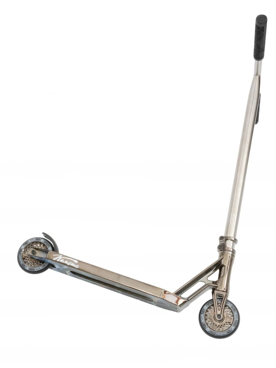 Вес самоката составляет всего 3,2 кг, что делает его легким и удобным для выполнения трюков.