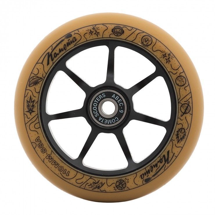 Колесо Комета Старт 110 мм в коричнево-черной расцветке — это идеальный выбор для тех, кто хочет сочетать стиль и надежность. Полиуретановое колесо с жесткостью 88A обеспечивает отличное сцепление и амортизацию, а алюминиевый диск гарантирует долговечность и устойчивость к нагрузкам. Подшипники класса ABEC-9 обеспечивают высокую скорость и плавность хода, что делает это колесо отличным для выполнения трюков и катания на любом покрытии. Эффектный дизайн колеса придаст вашему самокату уникальный и привлекательный вид, выделяя вас среди других райдеров.