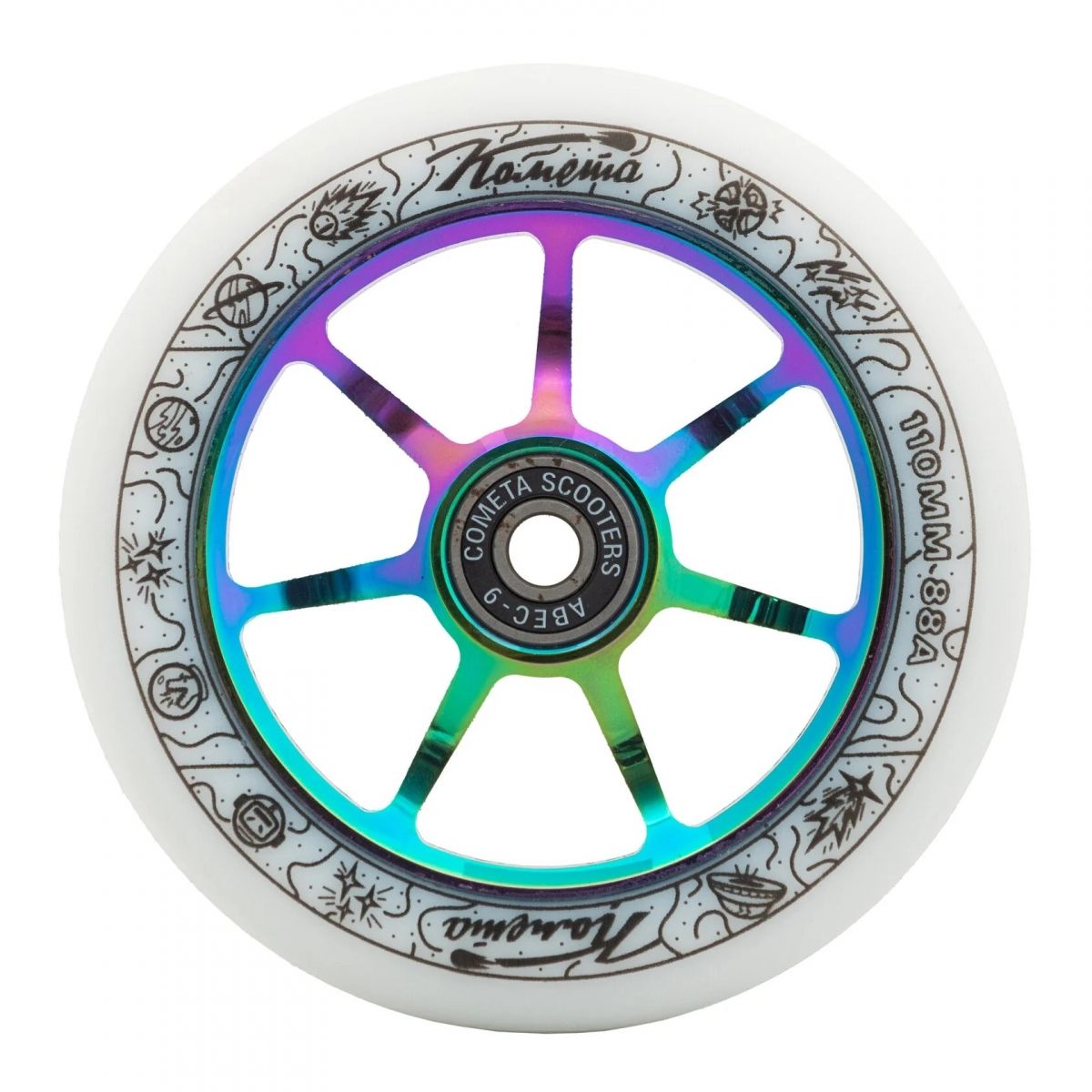 Колесо Комета Старт 110 мм в белом цвете с неохромными акцентами — это идеальный выбор для тех, кто хочет сочетать стиль и высокую производительность. Полиуретановое колесо с жесткостью 88A обеспечивает отличное сцепление и амортизацию, а алюминиевый диск гарантирует долговечность и устойчивость к нагрузкам. Подшипники класса ABEC-9 обеспечивают высокую скорость и плавность хода, что делает это колесо отличным для выполнения трюков и катания на любом покрытии. Элегантный дизайн колеса придаст вашему самокату уникальный и привлекательный вид, выделяя вас среди других райдеров.