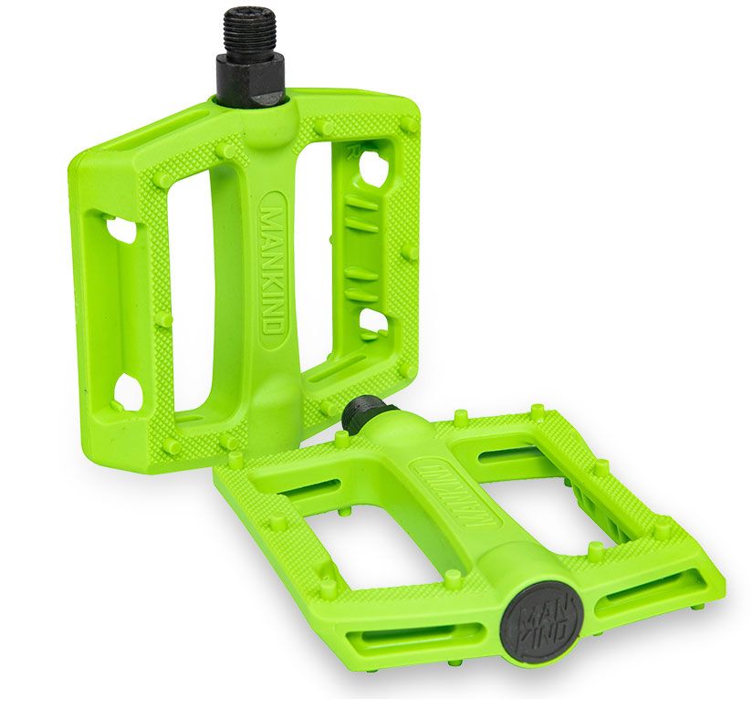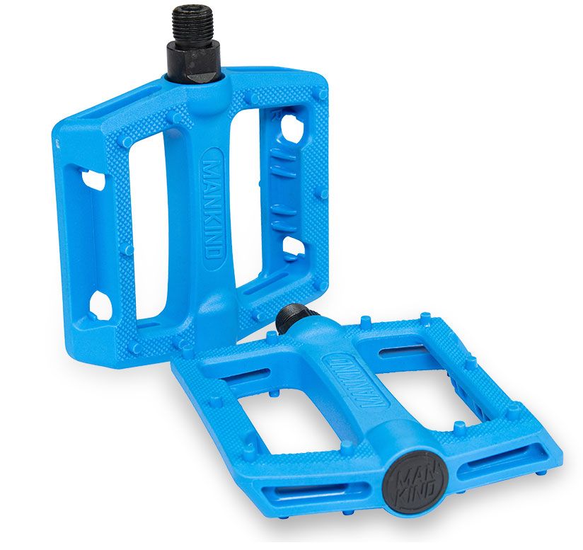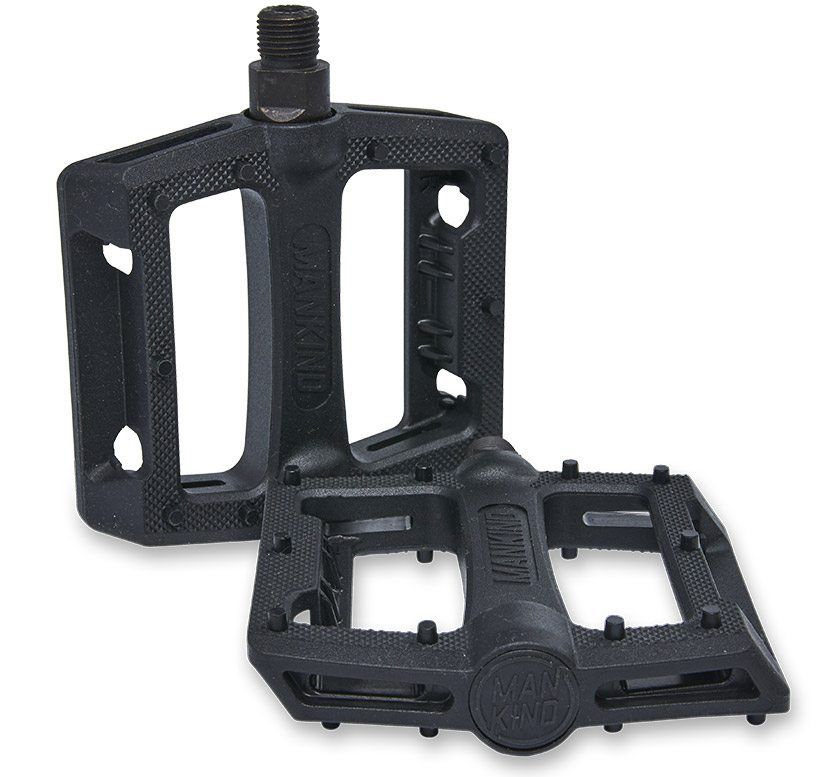 Когда дело касается контроля над байком, на помощь приходят педали Mankind Control. Их тонкая платформа с насечкой и по 10 шипов с каждой стороны гарантирует максимальное сцепление. Внутри насыпные подшипники, а корпус выполнен из композитного пластика, который сложно повредить. Хромомолибденовая закаленная ось — самая прочная и надежная часть педалей, не требующая беспокойства. Установка и снятие педалей осуществляется с помощью стандартного педального ключа или шестигранника 6 мм. Вес педалей всего 389 г, в комплекте пара педалей с резьбой 9/16 дюйма и пластиковыми шипами.