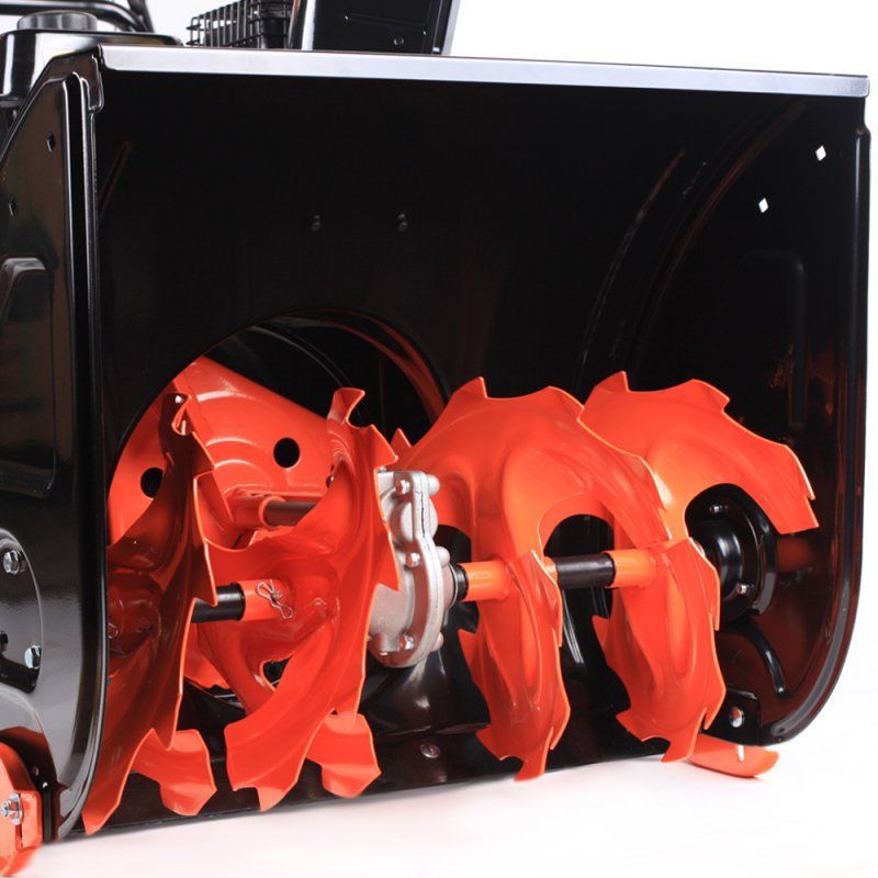 Двухступенчатая система шнеков: для эффективного измельчения и отбрасывания снега.