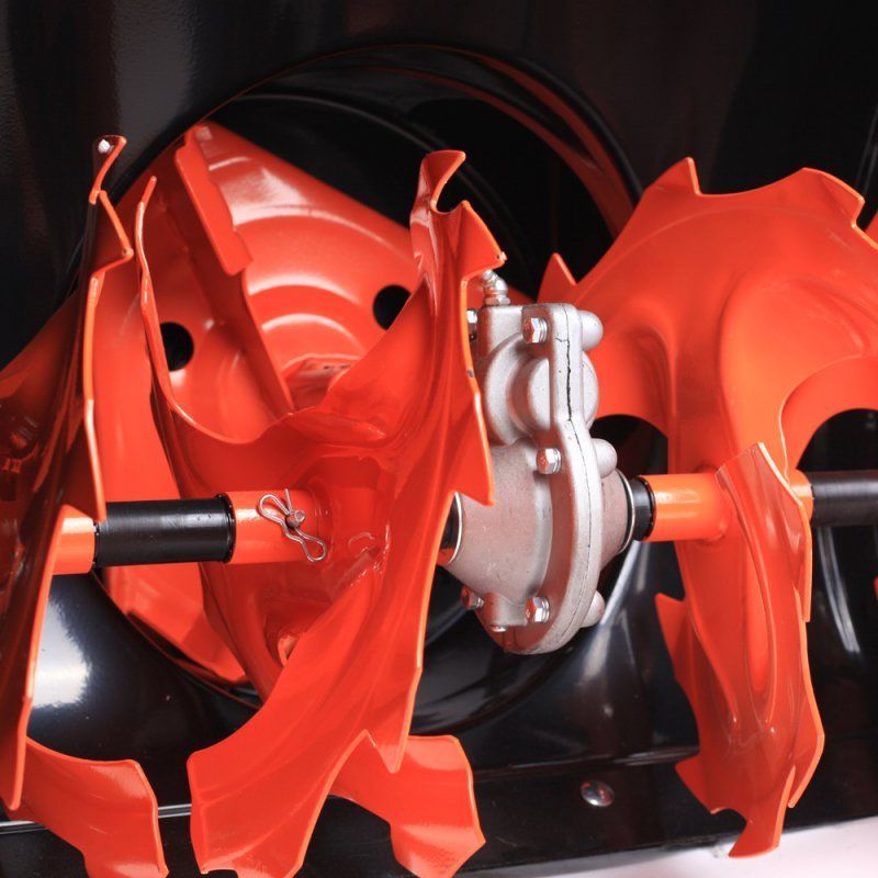 Электростартер с питанием от бортового аккумулятора обеспечивает легкий запуск даже в холодную погоду, а фара на рукоятке освещает дорогу при работе в темное время суток. Колеса с агрессивным рисунком протектора исключают пробуксовку на обледенелых поверхностях.