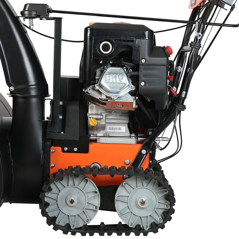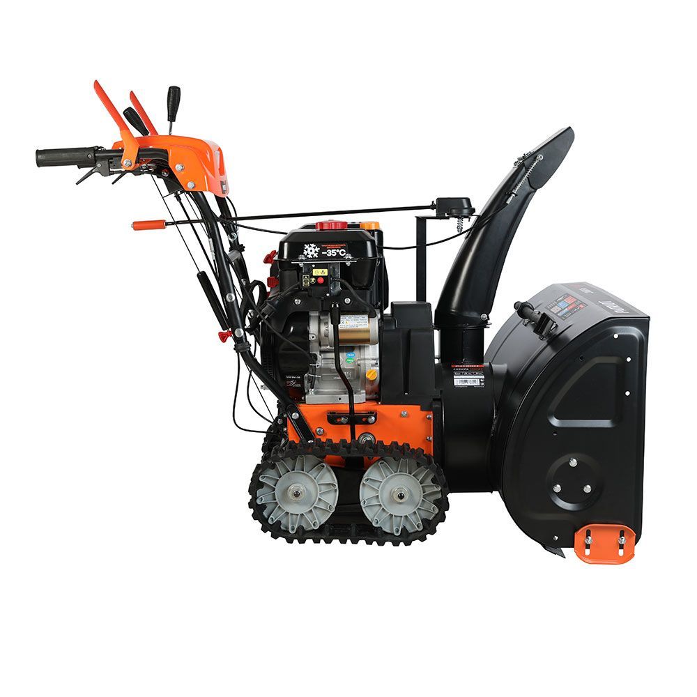 Двухступенчатая система металлических зубчатых шнеков эффективно измельчает и отбрасывает снег на расстояние до 15 метров, что значительно ускоряет процесс уборки. Гусеничный привод обеспечивает отличное сцепление и маневренность на неровных и сложных участках.