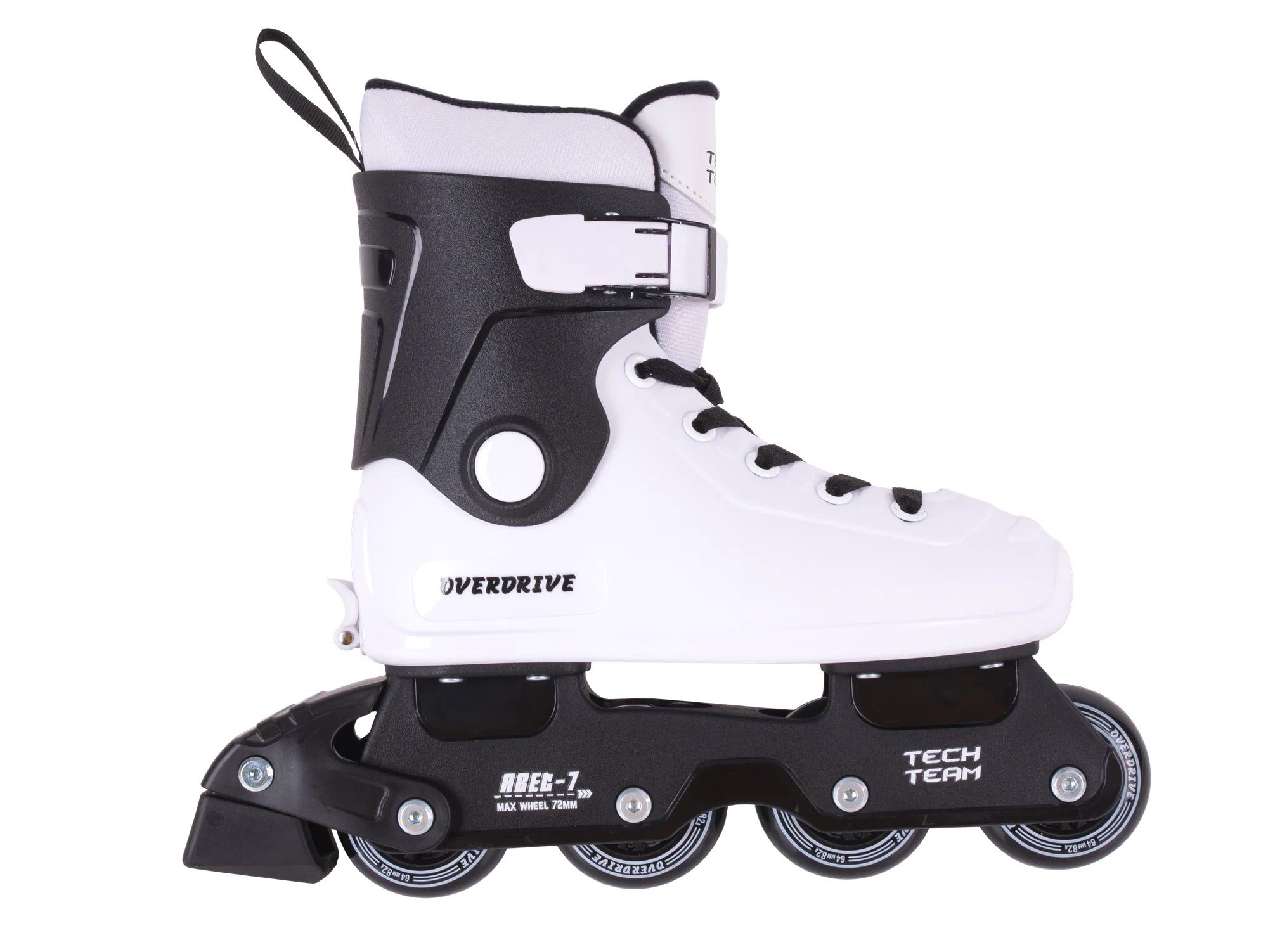 Стильные роликовые коньки TechTeam Overdrive в классическом белом исполнении – надёжная модель для начинающих роллеров! Особенность модели – раздвижная система на 3 размера (39-42).