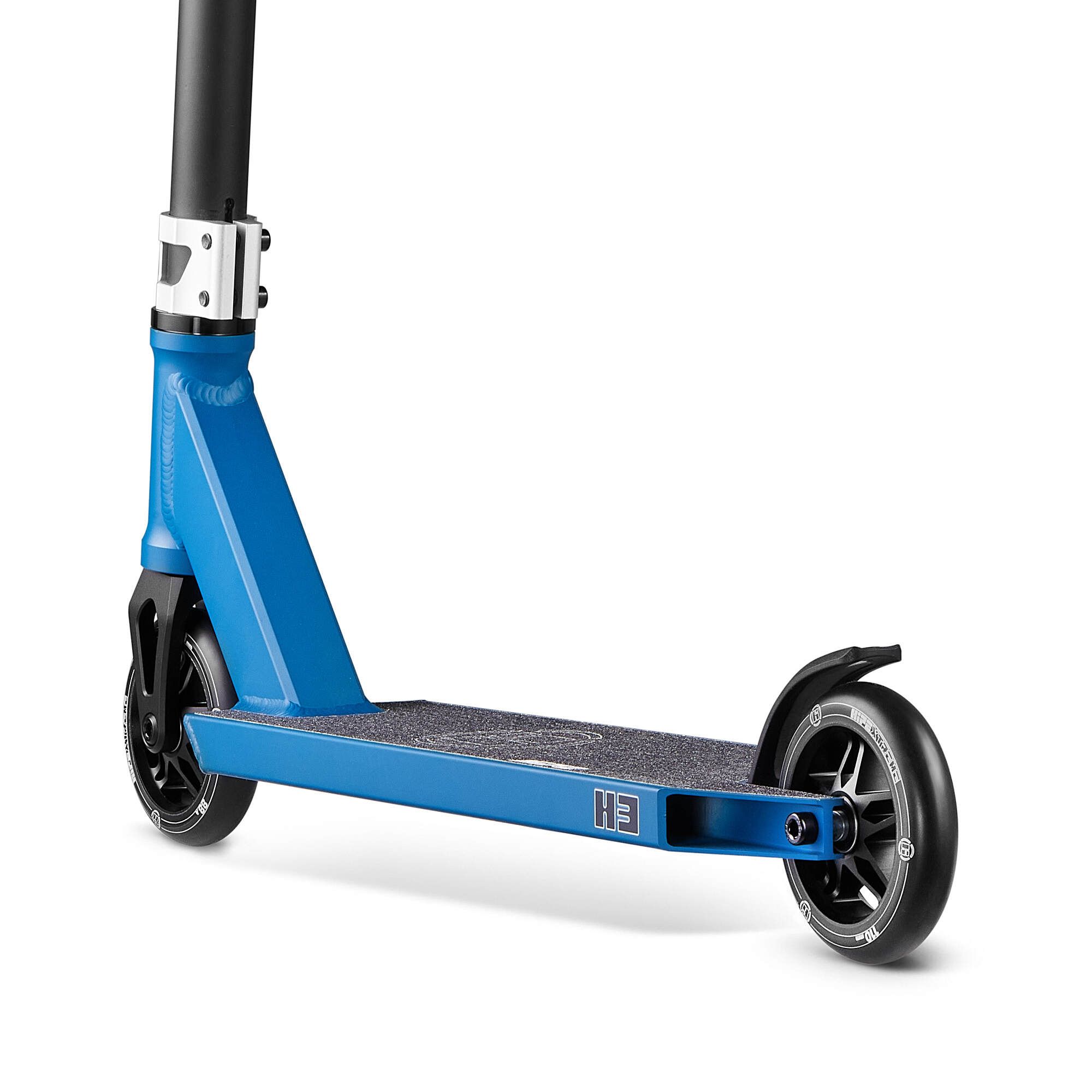 Трюковой самокат HIPExtreme H3 в эффектном черно-синем исполнении - это профессиональная модель паркового класса с полностью алюминиевой конструкцией. Благодаря дюралюминиевому рулевому комплекту и вилке-моноблоку самокат весит всего 3,39 кг при максимальной нагрузке до 100 кг. Y-образный руль с пропилом (560х600 мм), конкейв на деке (490х125 мм) и колеса 110 мм с подшипниками ABEC-9 обеспечивают отличную управляемость и отзывчивость. Идеален для начинающих и опытных райдеров с ростом от 140 до 170 см. В комплекте идут инструменты для настройки: шестигранники 5 и 6 мм, гаечный ключ.