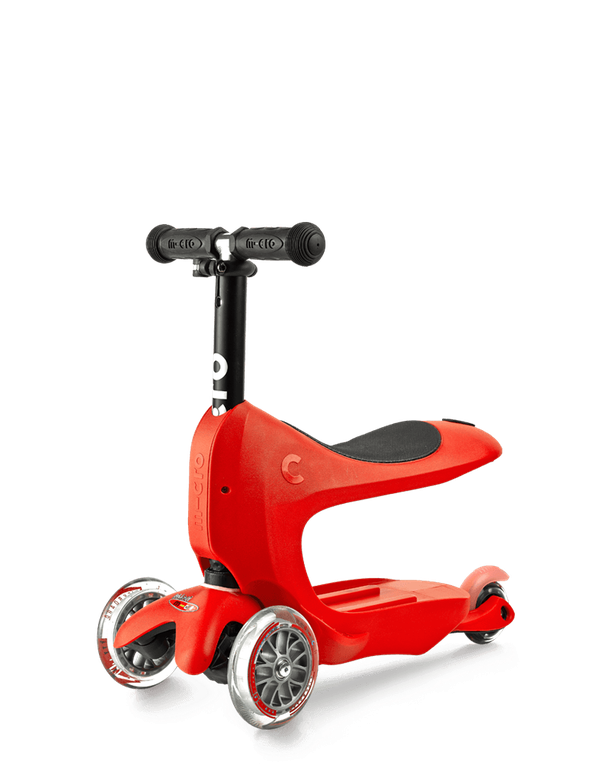 Самокат MICRO Mini 2Go Deluxe красного цвета представляет собой стильную и функциональную модель, разработанную специально для детей в возрасте от 18 месяцев до 5 лет. Основные особенности включают: