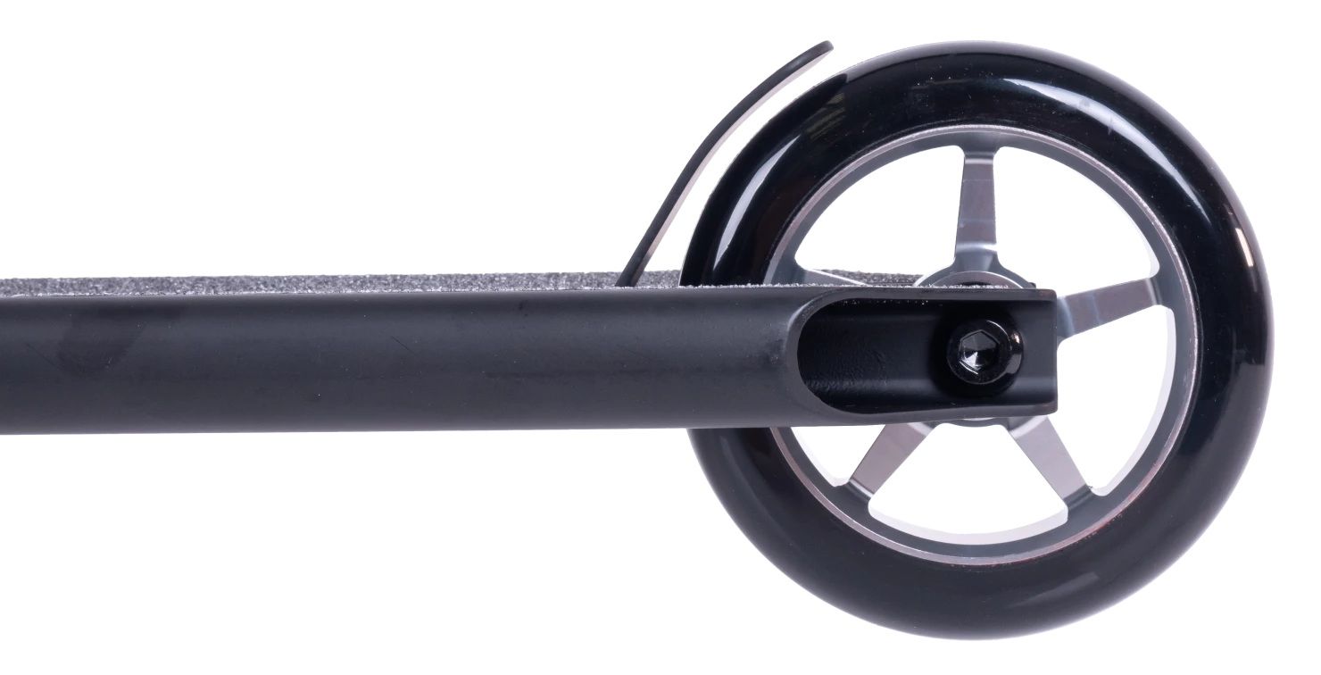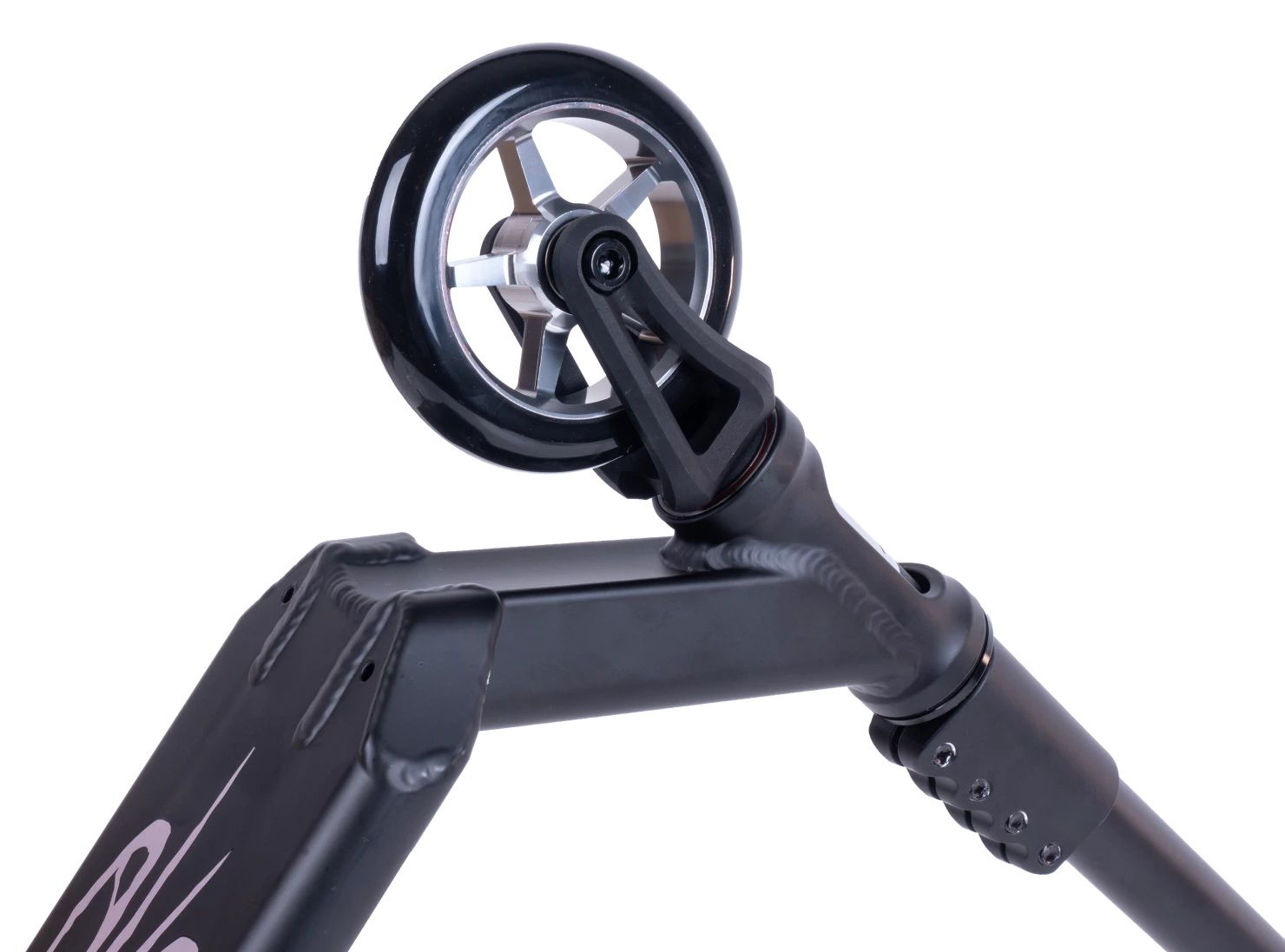 Стильный черный дизайн придает самокату элегантный внешний вид.