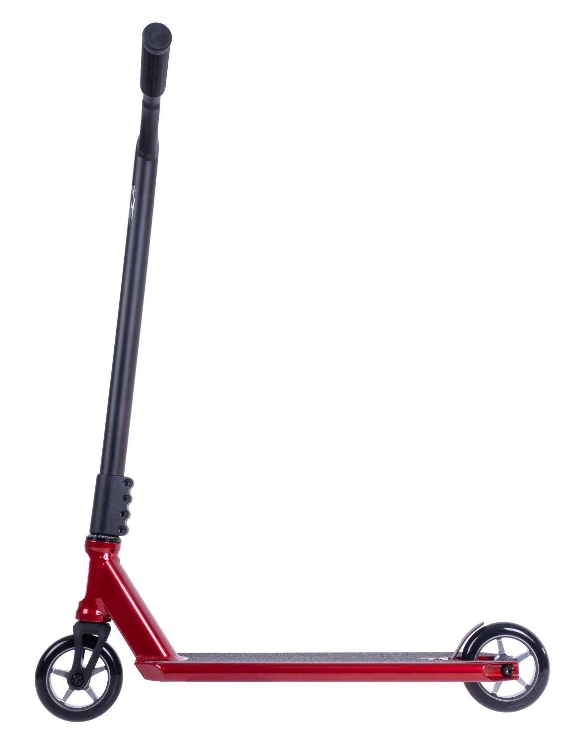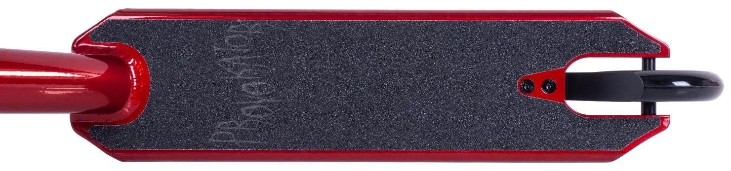 Этот самокат оснащен мягкими резиновыми грипсами длиной 135 мм и фрезерованной вилкой из прочного алюминиевого сплава 7075, что делает его легким и маневренным. Яркий красно-черный дизайн придает ему стильный и агрессивный вид, подходящий для любого экстремального спортсмена.