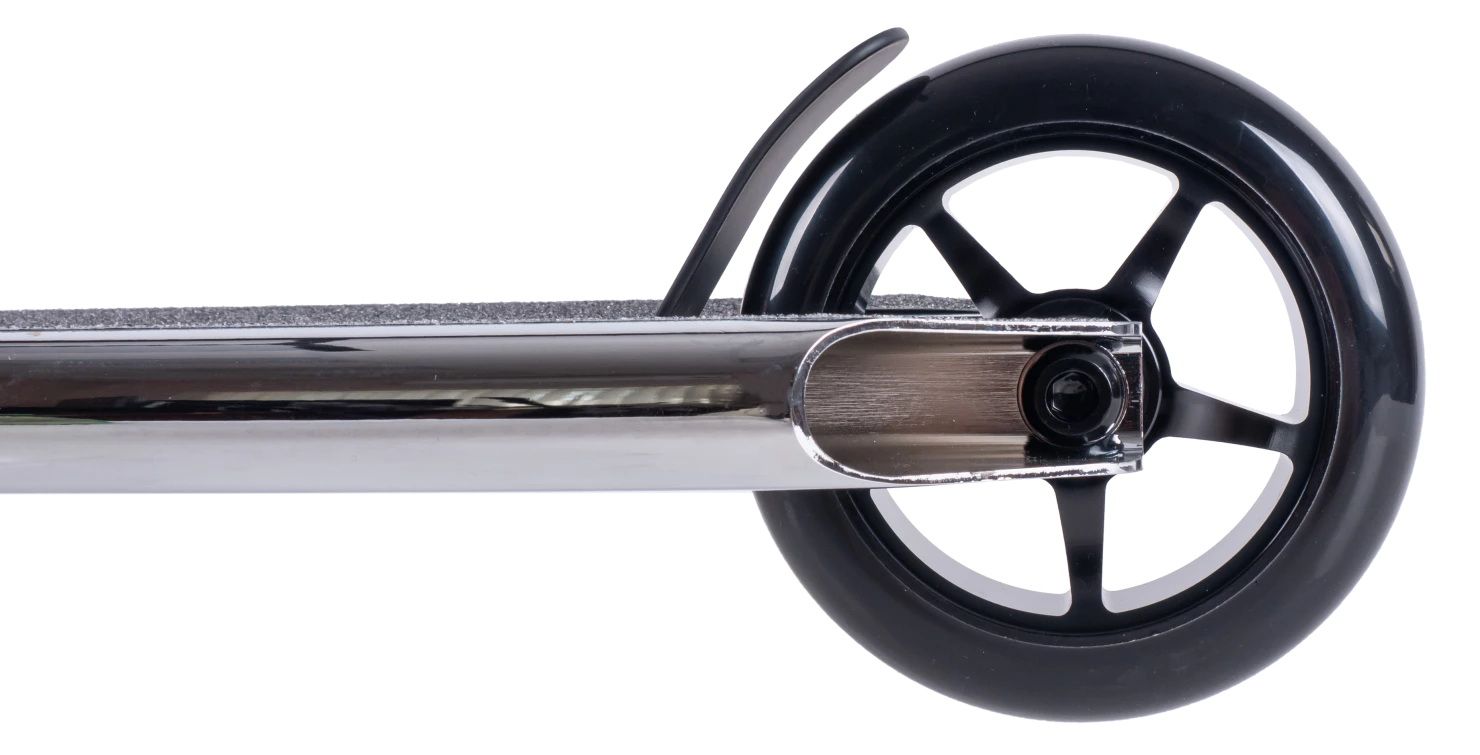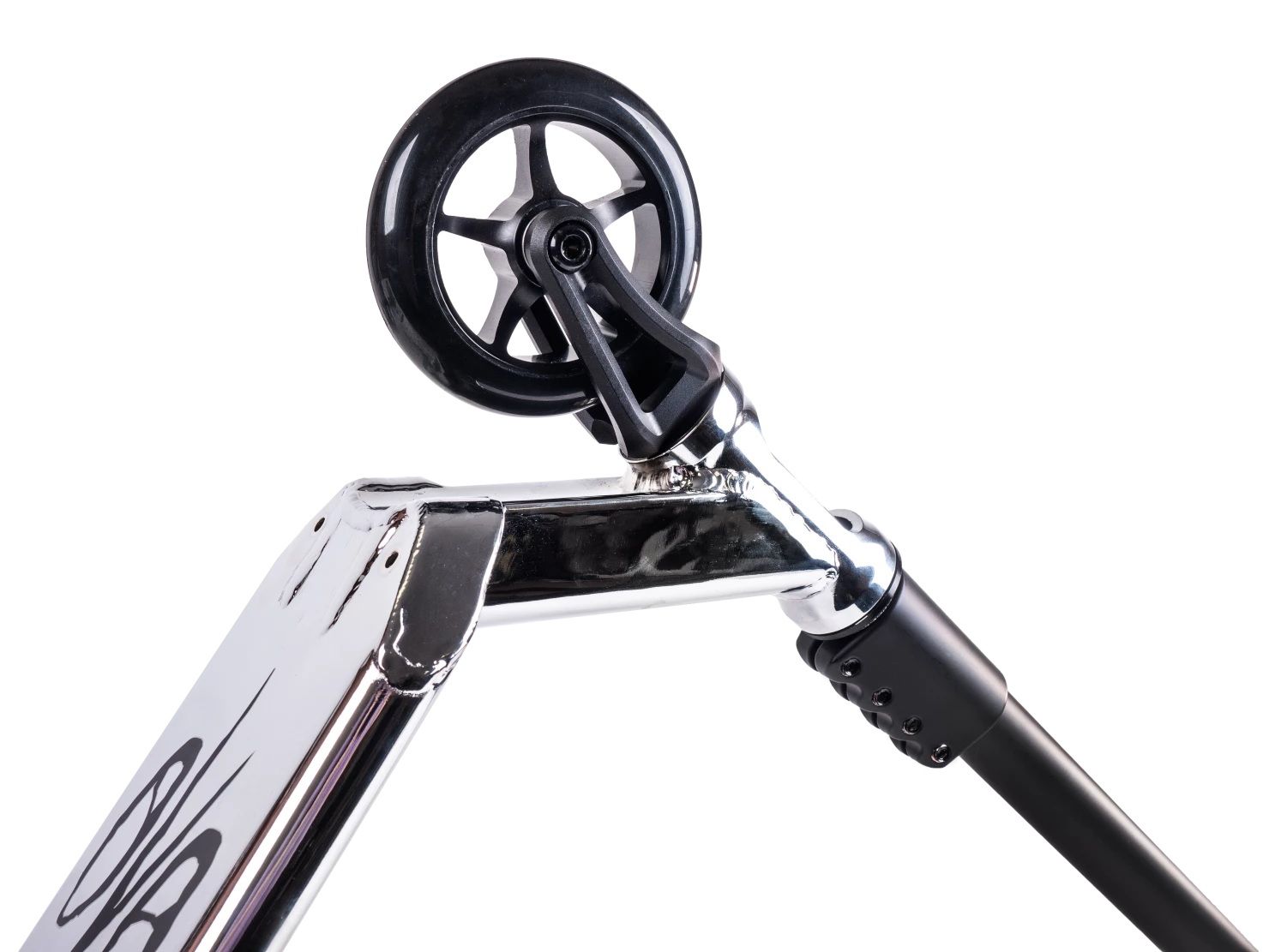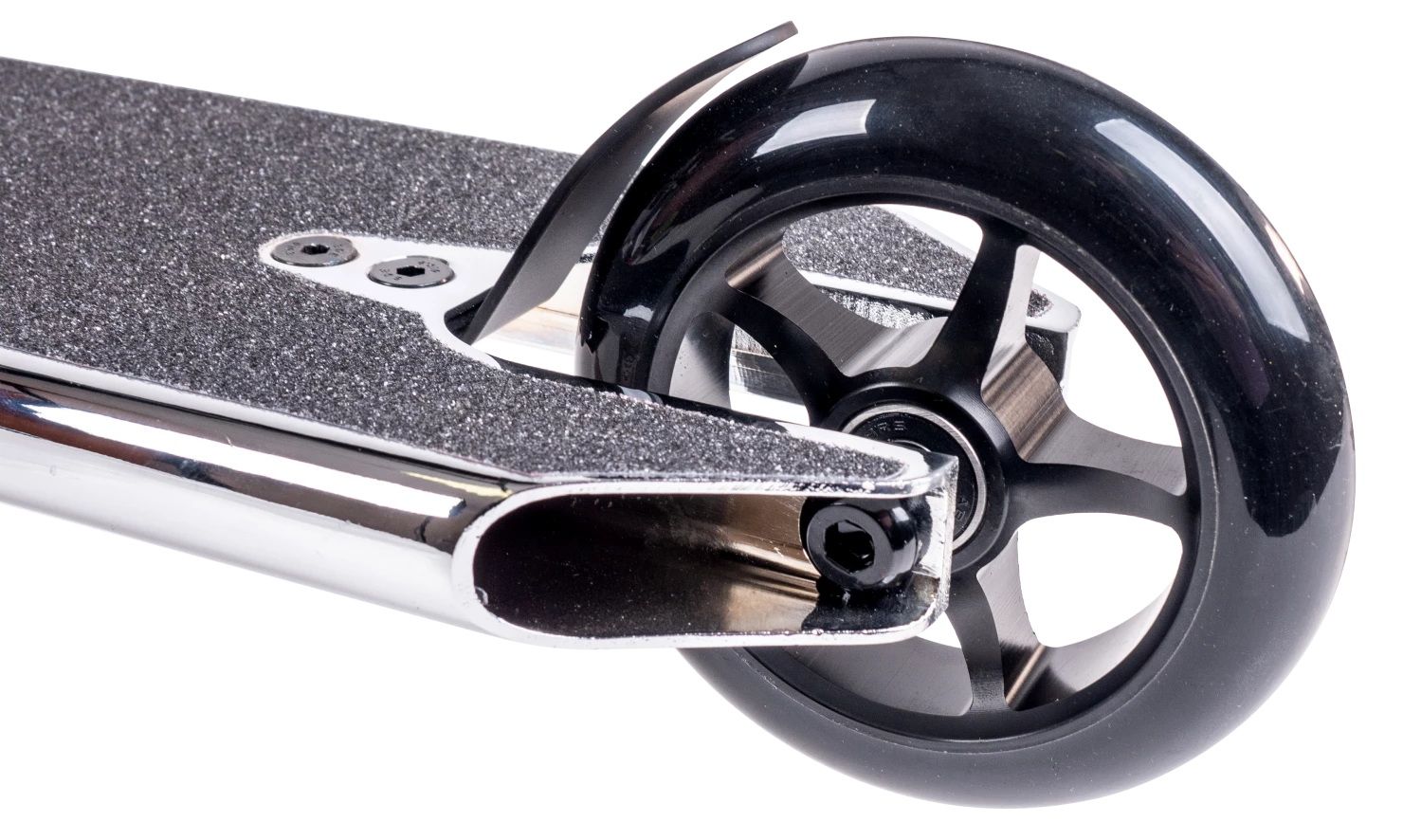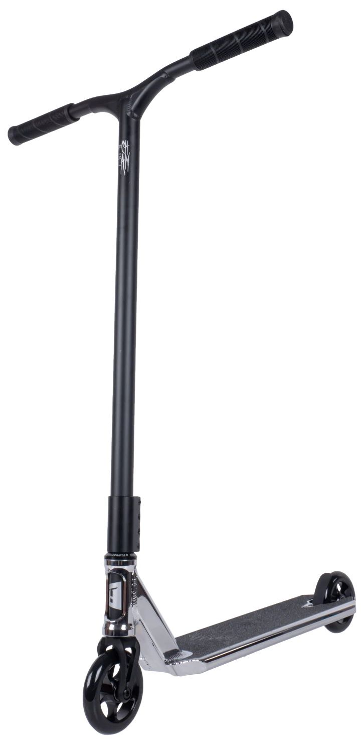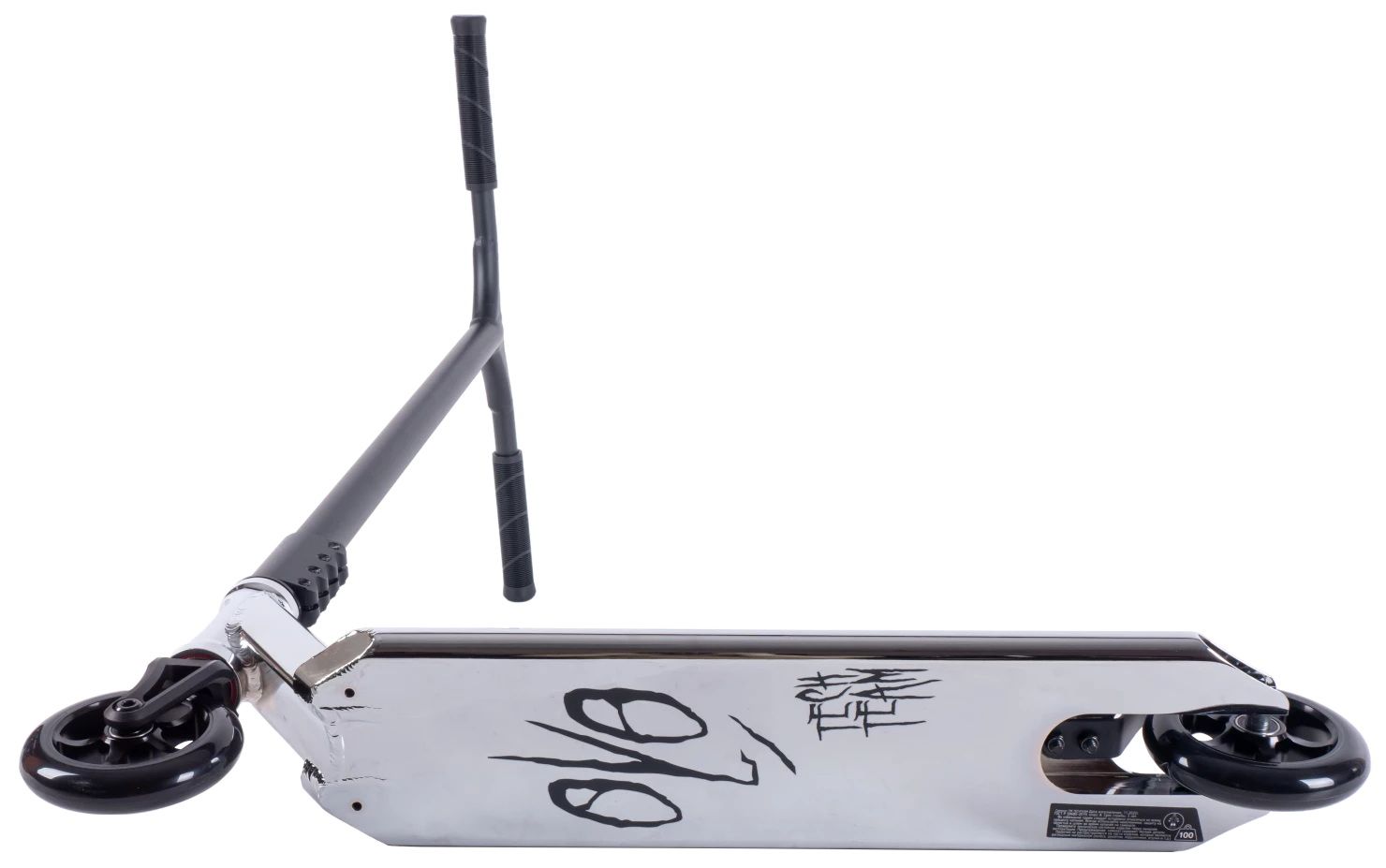 Самокат имеет интегрированную рулевую систему SCS и алюминиевый руль, что делает его идеальным для выполнения самых сложных трюков. Колеса диаметром 110 мм обеспечивают отличную устойчивость и контроль, а подшипники ABEC 9 гарантируют высокую скорость и плавность хода.