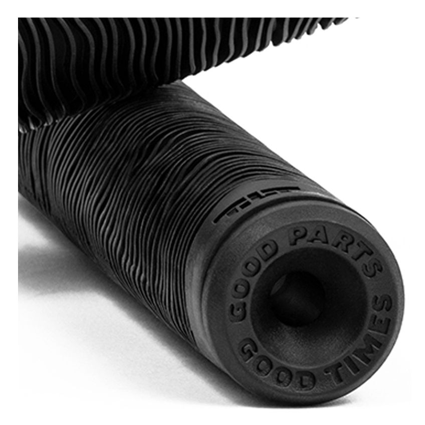 Грипсы TILT Topo v2 — это обновленная версия популярной модели с зеркальным дизайном. В первой версии ребра рисунка были широкими, а расстояние между ними узким. В этот раз TILT сделали все наоборот, и грипсы получились гораздо мягче и удобнее. Органичный абстрактный узор гарантирует надежный и комфортный хват. Изготовлены из резины, в комплекте с барэндами. Длина составляет 165 мм, диаметр — 31 мм, вес — 124 г.
