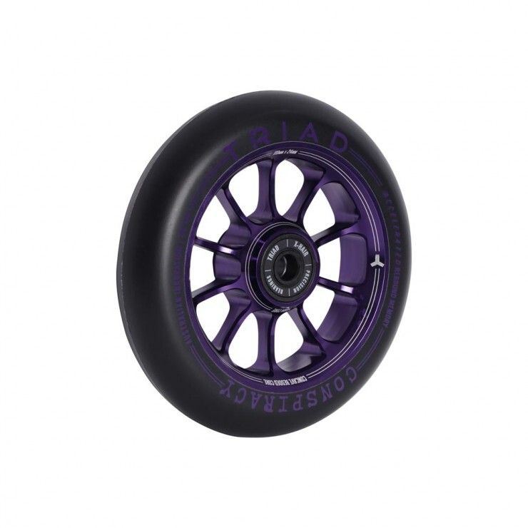 Колесо для самоката TRIAD Conspiracy 110 мм в фиолетовом цвете — это сочетание стильного дизайна и высокой производительности. Изготовленное из высококачественного алюминия, оно отличается легкостью и прочностью. Полиуретановое покрытие с жесткостью 88A обеспечивает отличное сцепление и амортизацию, что делает его идеальным как для трюков, так и для городского катания.