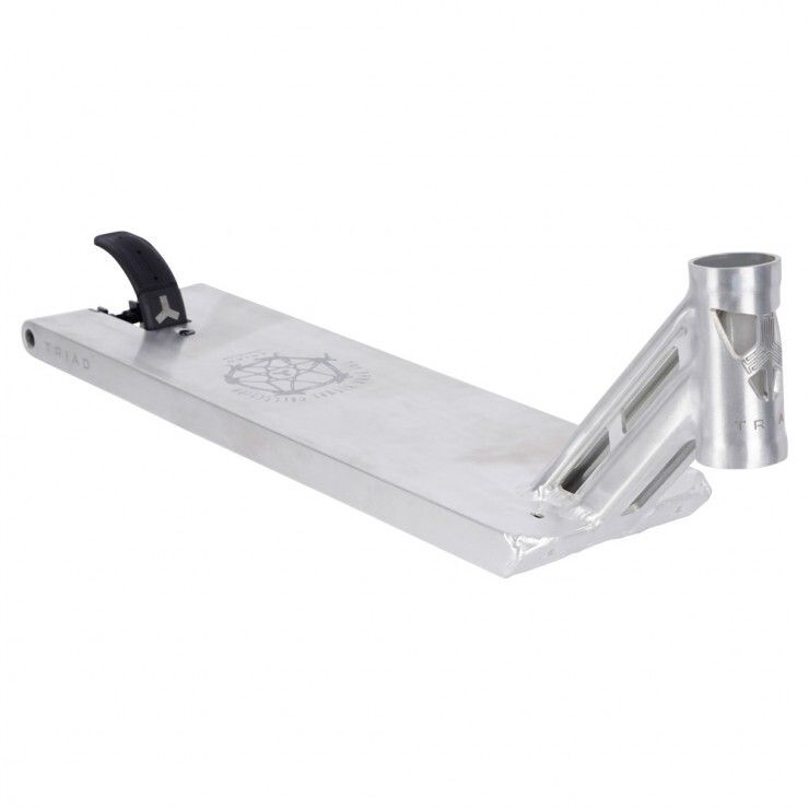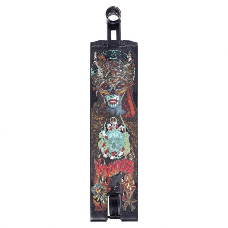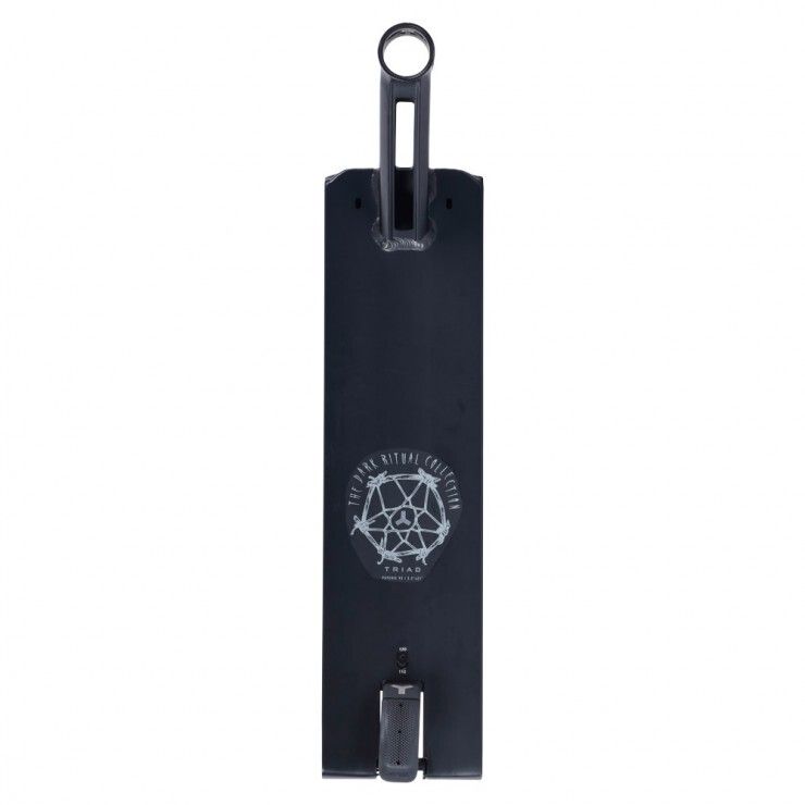 TRIAD Psychic V2 boxed 6x23" — это стритовая дека для трюкового самоката, выполненная из высококачественного алюминия. Размеры деки составляют 585 мм в длину и 152 мм в ширину, обеспечивая достаточно пространства для ног (футспейс 435 мм). Дека оснащена выраженным конкейвом для лучшего контроля и управляемости, квадратные дропауты позволяют выполнять гринды. Дека совместима с колесами диаметром от 100 до 125 мм и шириной до 30 мм. Высота рулевого стакана — 105 мм. Особенностью этой деки является ее интересный дизайн: на нижней части имеется детализированная иллюстрация, которая придает ей уникальный и стильный вид. В комплекте идет ось 8 мм, проставки для колес 24 мм и 30 мм, а также тормоз. Вес деки всего 1.93 кг, что делает ее легкой и маневренной, подходящей для райдеров любого уровня.