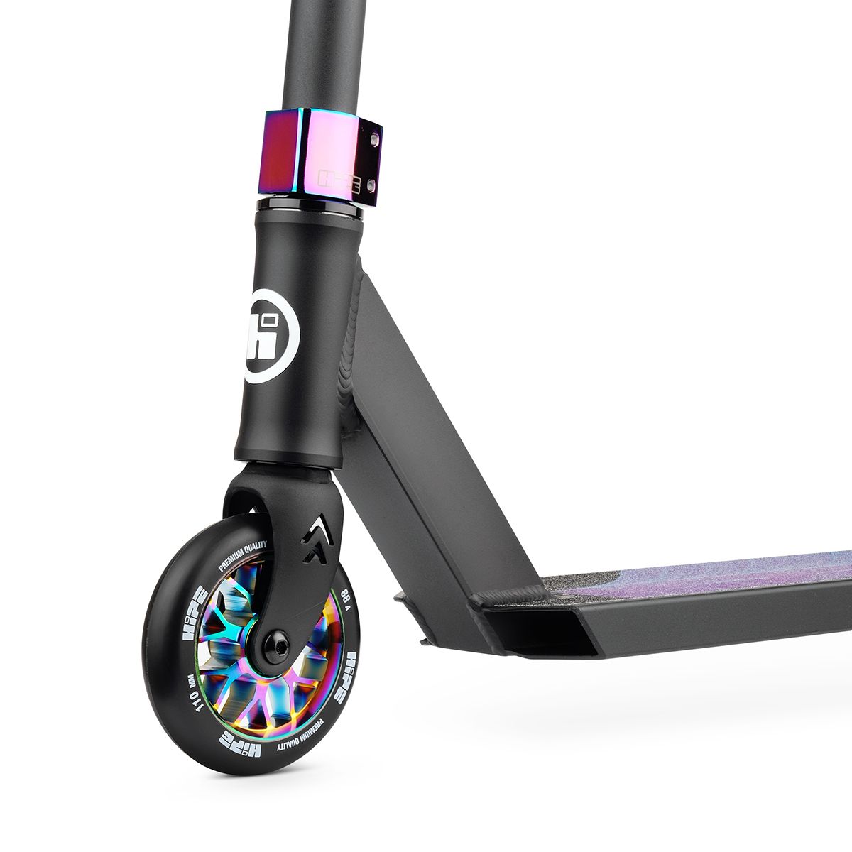 Система компрессии IHC обеспечивает надежность и стабильность, а мягкие грипсы обеспечивают комфорт даже при длительных тренировках. Стильный дизайн и уникальное цветовое решение делают этот самокат привлекательным для всех, кто ценит качество и надежность. Hipe H3 oil-slick подходит как для начинающих, так и для опытных райдеров, стремящихся к новым высотам в мире экстремального спорта.