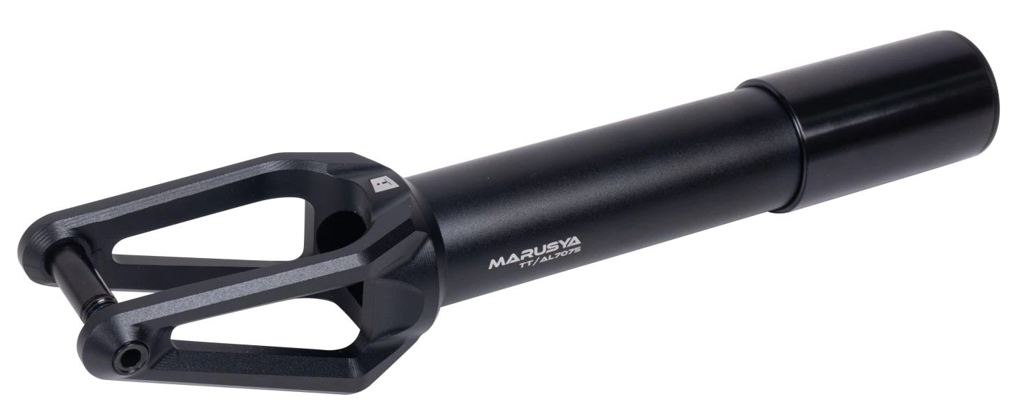 TECHTEAM Marusya SCS/HIC — одна из самых легких вилок в мире, весом всего 149 граммов без фурнитуры и 187 граммов с HIC колбой и остальными компонентами. Она изготовлена из термообработанного алюминия 7075, что гарантирует высокую прочность при минимальном весе. Ось полая, с нарезанной резьбой вместо гайки. В комплекте: HIC колба, болт с блинчиком и ось. Подходит для колес диаметром 100-110 мм и шириной до 24 мм.