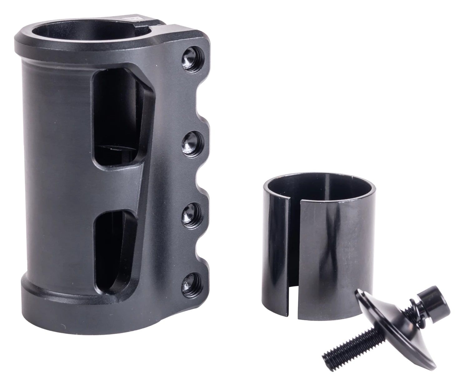 Зажим Tech Team Vesemir SCS представляет собой надежное и долговечное решение для компрессии руля вашего трюкового самоката. Изготовлен из термообработанного алюминия 6061-Т6, что обеспечивает высокую прочность и устойчивость к нагрузкам. Vesemir SCS поддерживает рули всех стандартов, в комплекте идут проставка, компрессионный болт и шайба, что делает его универсальным и удобным в установке. Вес зажима с болтами составляет всего 227 грамм, что способствует улучшению маневренности и контроля самоката.