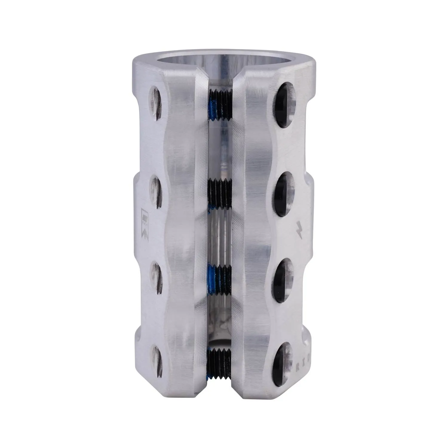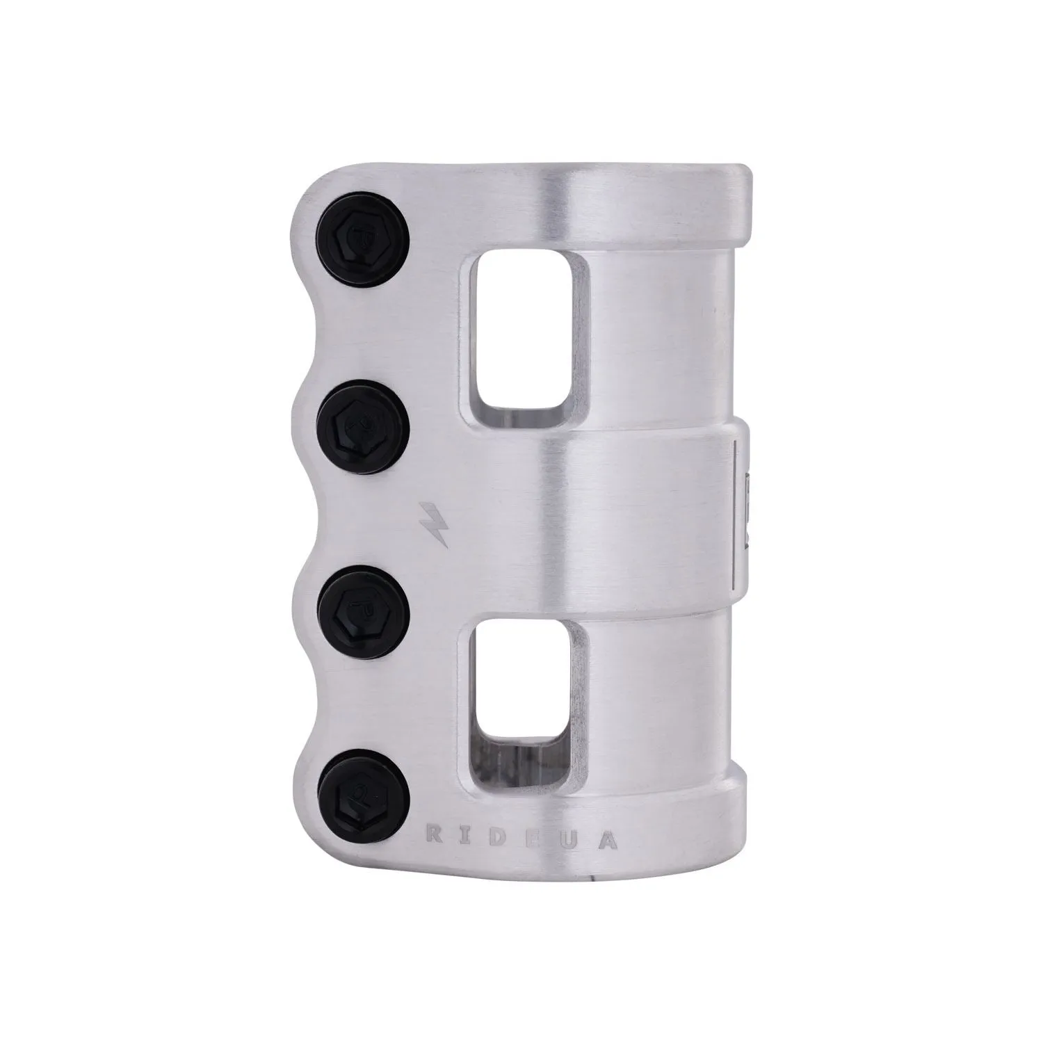 Зажим UrbanArtt Civic SCS представляет собой эволюцию зажимов Cyro и Primo, сочетая в себе уникальный дизайн с фрезеровкой и четыре болта под шестигранник 6 мм. Совместим со стандартными рулями 31.8 мм и oversize рулями 34.9 мм. В комплекте идет проставка, делая его универсальным решением для вашего трюкового самоката. Зажим выполнен из алюминия 6061-Т6, имеет высоту 83 мм и весит 185 г, а с аксессуарами — 257 г.
